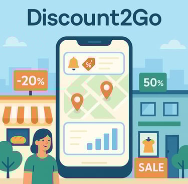 En Discount2Go conectamos a consumidores con las mejores ofertas locales en tiempo real, ayudando a los comercios físicos a atraer clientes y medir el impacto de sus promociones.