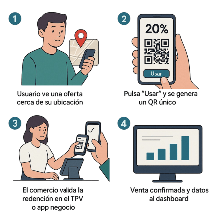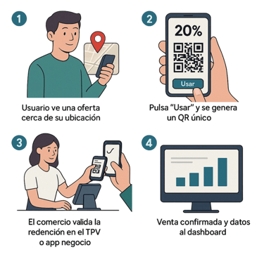 Acércate al establecimiento y compra enseñando el código QR en la app de discount2go.es